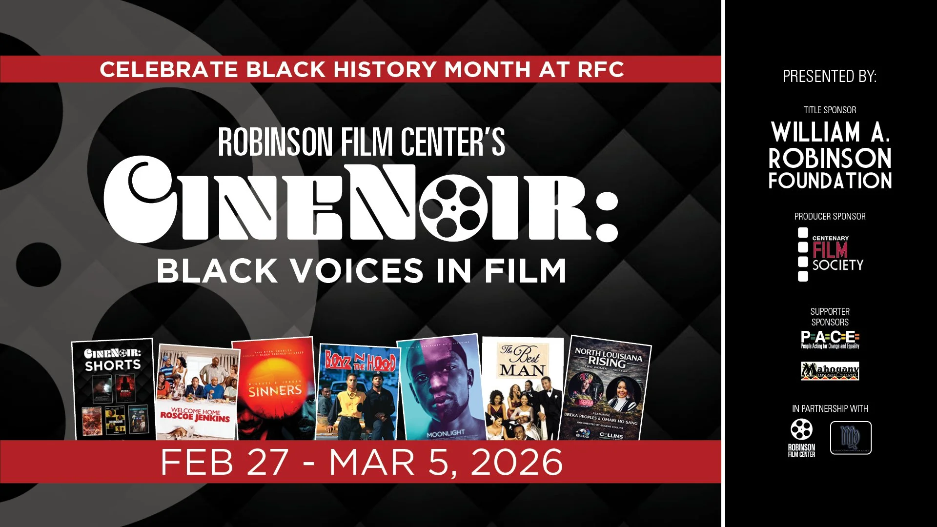 Robinson Film Center, in partnership with Mahogani Media, proudly presents the 2026 CineNoir: Black Voices in Film series!