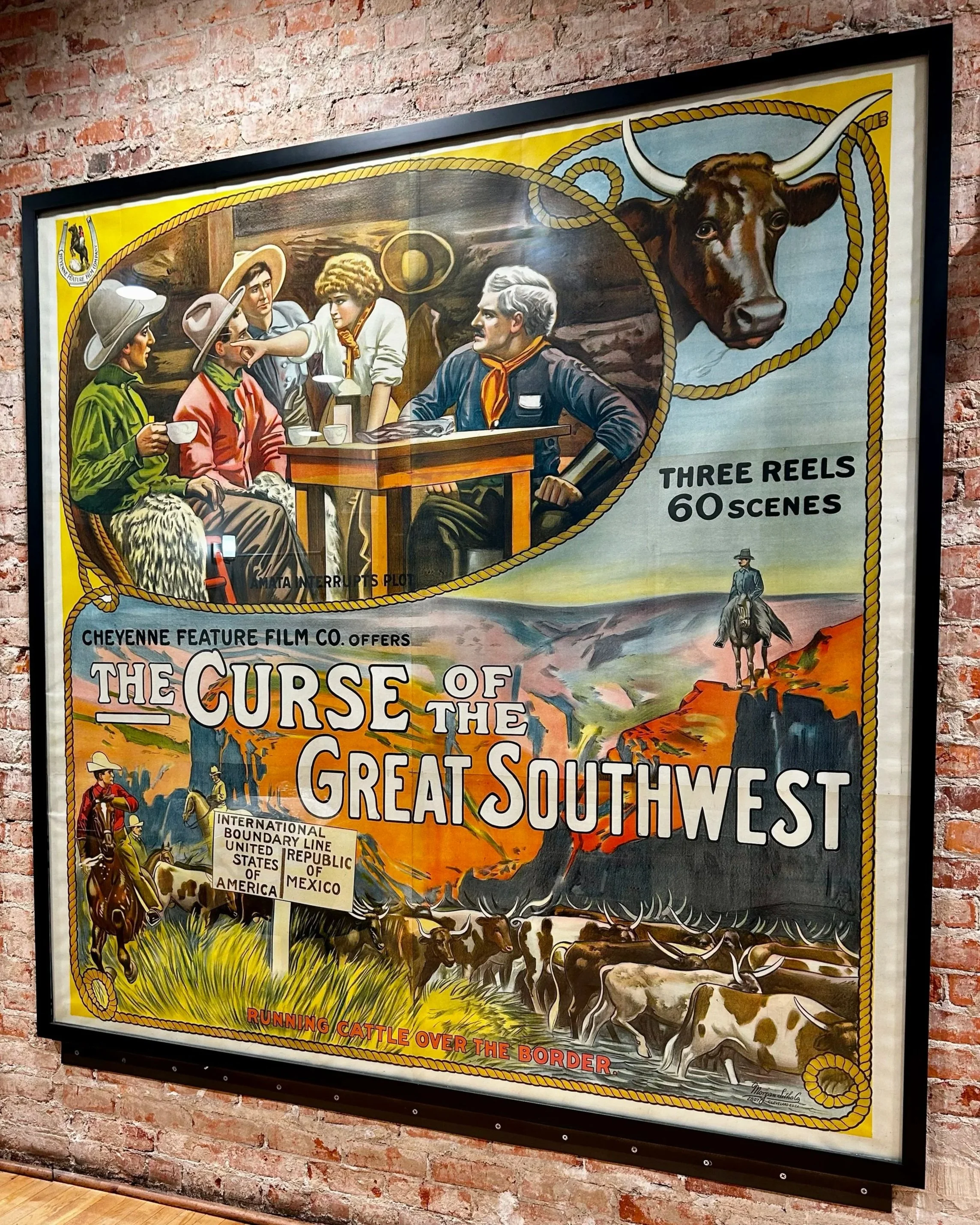 During the formation of the board and building committees of RFC (2005) individual poster sheets were given by the family of Howard Clinton Belcher, Jr. to Marion Marks in anticipation of preservation and display at a future date at RFC. The poster sheets were archived since 2005 in acid-free binders and shipped to Chicago in 2023 for conservation. They were washed, bleached, mounted on linen and canvas, rebuilt with filler & paint, framed in Shreveport and placed on display by the Marks family & MMCC Forensic. These are the only known posters of these silent movies known to exist.