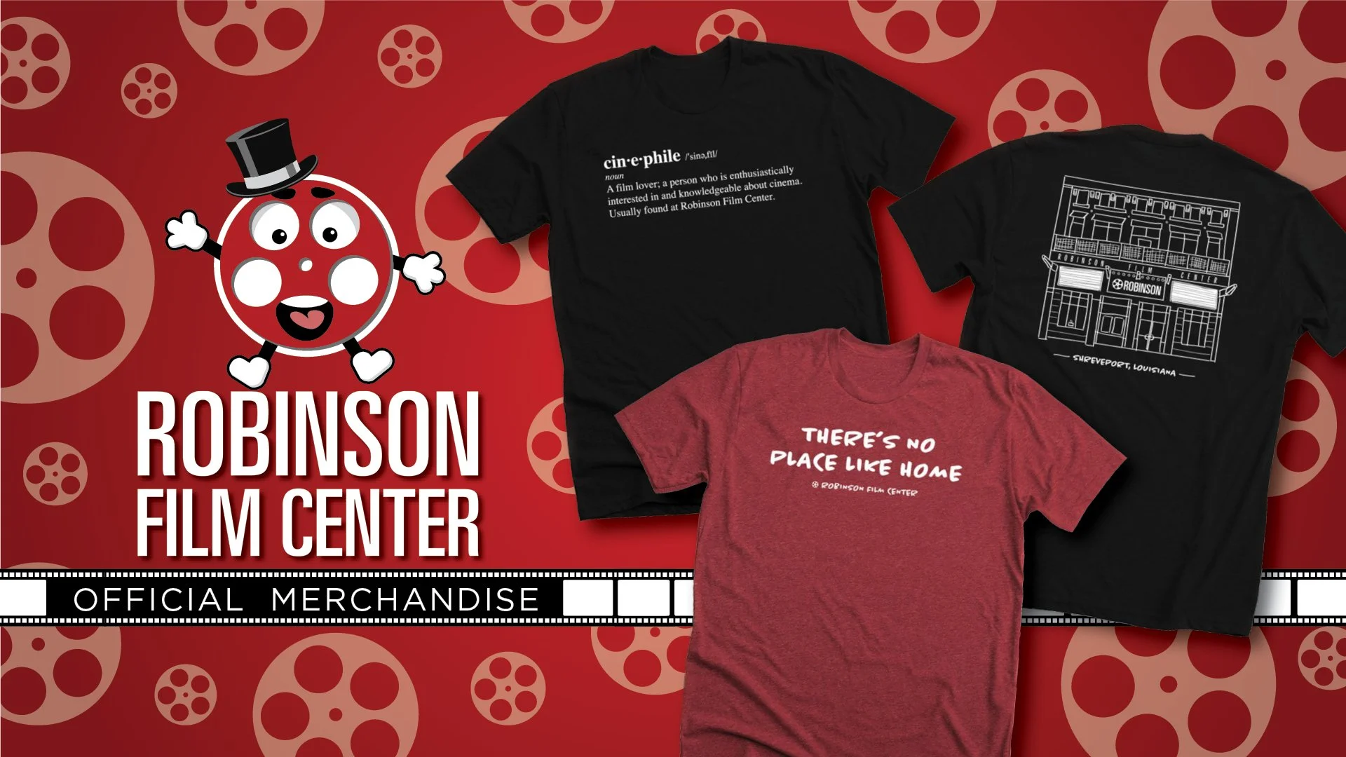 Show your love for Robinson Film Center with custom designed merchandise! New t shirt designs just dropped and with 2 designs to choose from and lots of shirt style and color options, there’s something for everyone! All proceeds benefit RFC's film education programs. Order yours today!
